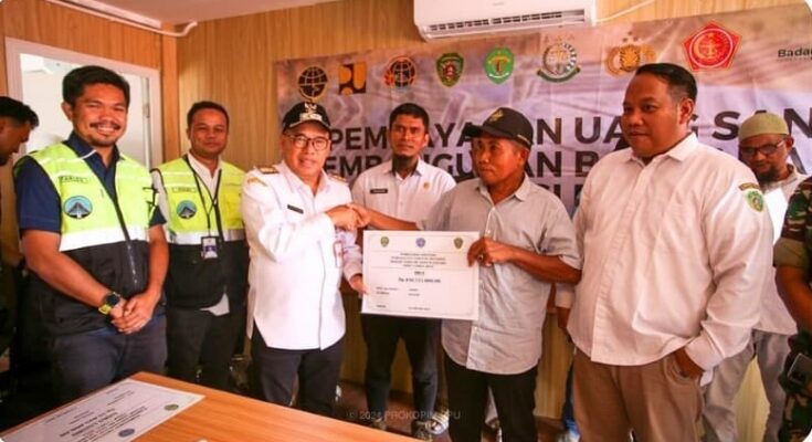 PENAJAM – Penyerahan santunan atau ganti rugi tahap kedua untuk sisi darat kepada masyarakat terdampak proyek pembangunan bandara VVIP Ibu Kota Nusantara (IKN) di Kelurahan Gersik, Kecamatan Penajam Kabupaten Penajam Paser Utara (PPU) kembali dilakukan, Rabu (6/3/2024) siang. Santunan ini diserahkan secara simbolis oleh Penjabat (Pj) Bupati PPU, Makmur Marbun disaksikan langsung perwakilan pejabat Kementerian Perhubungan, pejabat Pemprov Kalimantan Timur (Kaltim) dan sejumlah pihak terkait lainnya.