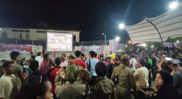 Home DAERAH Penajam Paser Utara SATPOL PP LAKSANAKAN PATROLI DAN PENGAMANAN SAAT ACARA NOBAR TIMNAS DI ALUN-ALUN PPU