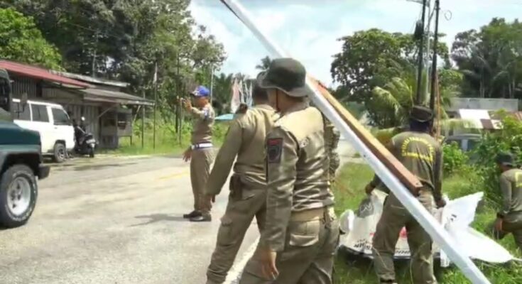 Penajam – Satpol-PP Kabupaten Penajam Paser Utara menemukan baleho yang tergeletak di pinggir jalan serta berdiri di tiang listrik, kemudian dilakukan pembongkaran. Lokasi kegiatan kali ini di Kelurahan Sepan, Kecamatan Penajam, Kabupaten Penajam Paser Utara, Kamis (14/11/2024).