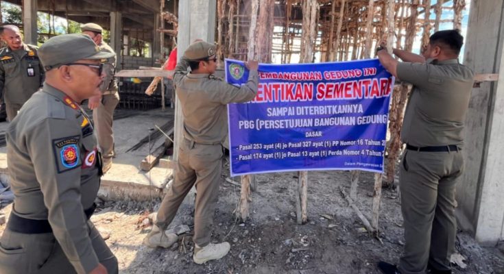 “Penghentian sementara ini berdasarkan Peraturan Daerah Nomor 4 Tahun 2015 tentang Bangunan Gedung, serta Surat Kepala Satuan Polisi Pamong Praja Nomor 300.1/1251/Satpol PP tanggal 28 Juli 2025 tentang penghentian sementara pembangunan,” terangnya.