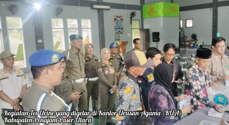 PENAJAM – Satuan Polisi Pamong Praja (Satpol PP) Kabupaten Penajam Paser Utara bersama unsur TNI, Polri, dan Badan Narkotika Kabupaten (BNK) melaksanakan pengamanan kegiatan Tes Urine yang digelar di Kantor Urusan Agama (KUA) Kabupaten Penajam Paser Utara, Kamis (4/9/2025) pagi.