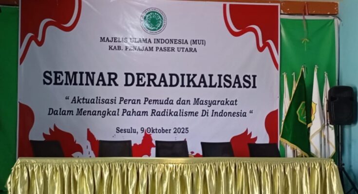 PENAJAM — Satuan Polisi Pamong Praja (Satpol PP) Kabupaten Penajam Paser Utara (PPU) melaksanakan pengamanan kegiatan Seminar Deradikalisasi yang digelar oleh Majelis Ulama Indonesia (MUI) Kabupaten PPU dengan tema “Aktualisasi Peran Pemuda dan Masyarakat dalam Menangkal Paham Radikalisme di Indonesia”, bertempat di Gedung Serba Guna Desa Sesulu, Kamis (09/10/2025).